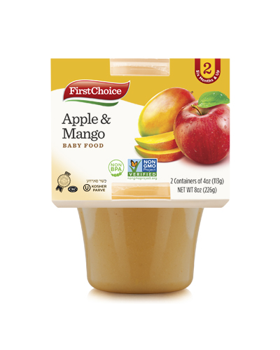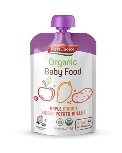 The First Choice line currently includes a variety of fruit and vegtable purees in plastic tubs, organic blends in easy to eat on your own pouches, and gluten-free baby rice snacks.