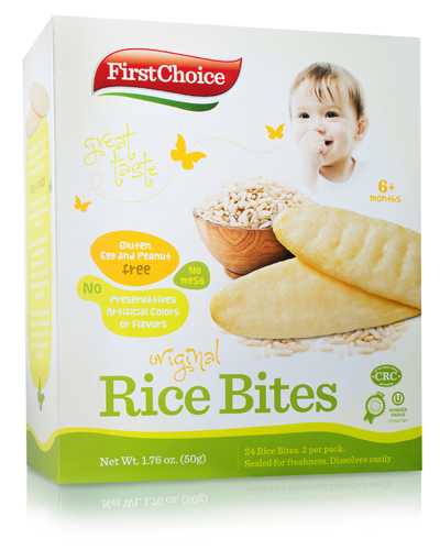 Rice Bites are the optimal snack for your baby. Theys are produced with delicious Japonica rice and will melt in baby's mouth. They contain added benefits of being gluten-free and mess-free and are highly valued for their size and shape.